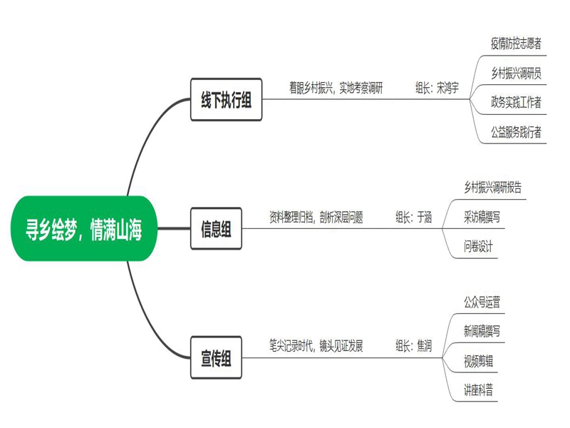 会议伊始,团队队员依次汇报了自己在家乡计划实施的实践活动类型以及联络情况。通过汇报,队长对队员的社会实践类型进行了统计,其中包括疫情防控志愿服务、乡村振兴调研、政务实践工作和公益服务工作。接着,团队成员围绕实践方向展开热烈的讨论,分享自己对活动主题的创新思考,分析活动实施的可行性,探索活动背后蕴含的价值。然后,队长依据讨论内容和队员特长,将团队队员分为线下执行组、信息组和宣传组。线下执行组围绕“着眼乡村振兴,实地考察调研”的主题进行各类社会实践。信息组致力于“资料整理归档,剖析深层问题”,负责广泛收集各类信息。宣传组则以“笔尖记录时代,镜头见证发展”为目标,宣传团队实践成果。最后,队长对此次会议进行总结,并提醒队员在活动过程中注意遵守防疫规范,保障自身安全。