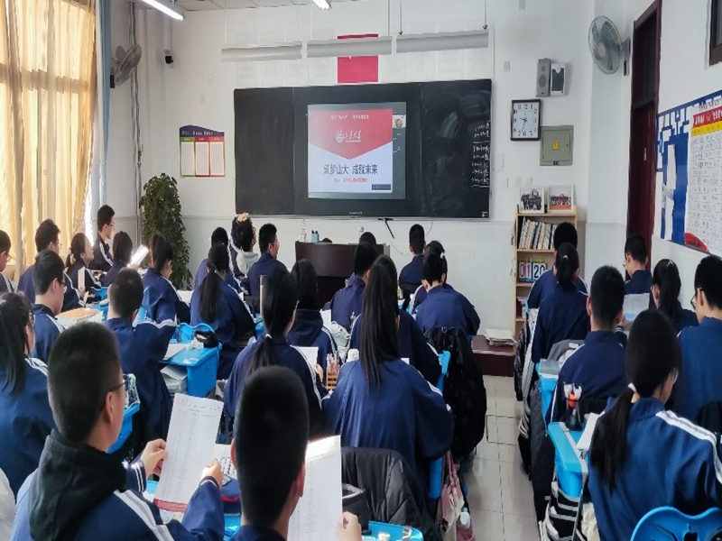 本次宣讲内容分为百廿山大、山大生活、学在山大和招生情况四个部分。纪雯萱通过PPT、短视频等多种形式,为高中学子详细介绍了永利集团304官网的历史沿革、学术氛围和生活条件等内容。此次宣讲在PPT中加入了团队拍摄的图片和视频,生动真实地展现了永利集团304官网百廿老校的精神风貌。宣讲过程中,同学们用心聆听,教室内不时发出阵阵掌声。最后,宣讲团也号召同学们关注永利集团304官网微信公众号和官网等,方便了解更多大学信息。宣讲团也建立了答疑QQ群,由队员进行后续的答疑和宣传工作。