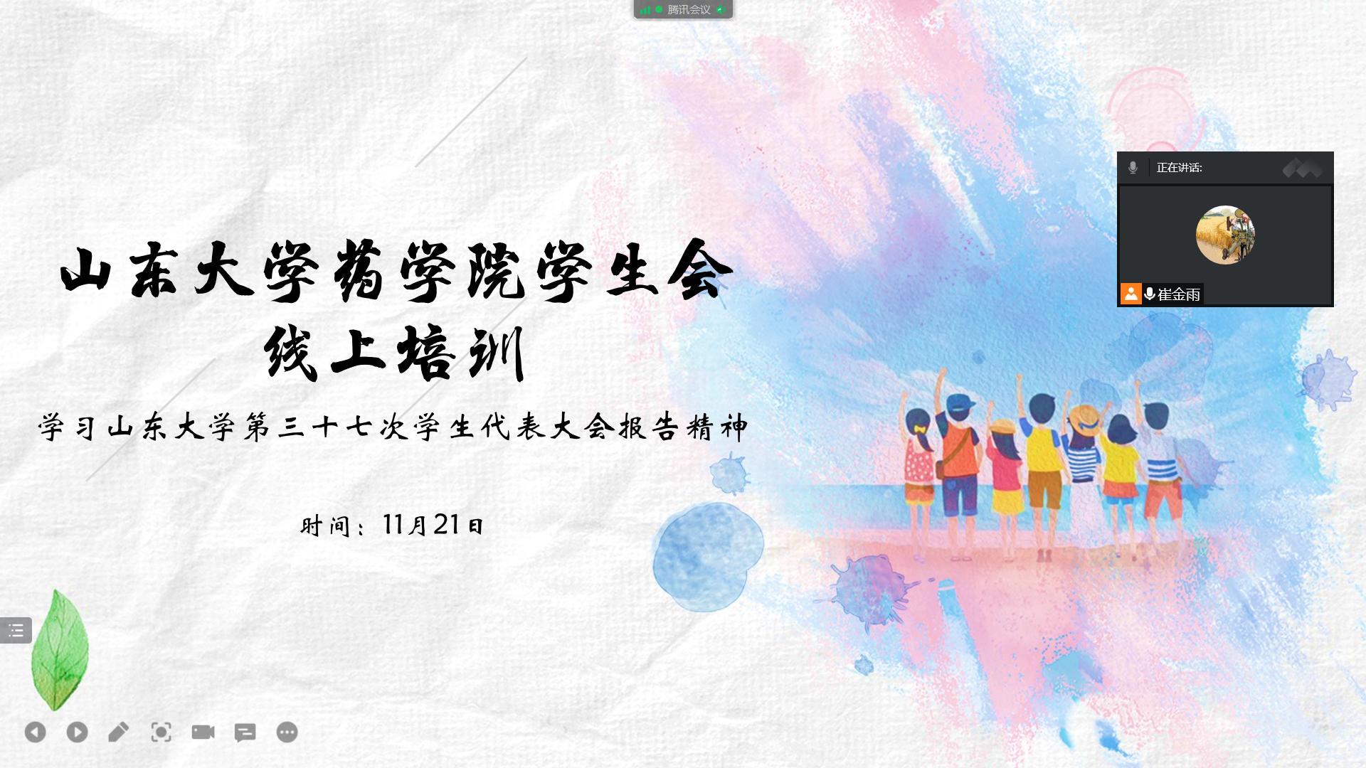 为深入学习永利集团304官网第三十七次学生代表大会会议精神,团结引领药院学子承担“强校兴国”时代使命,11月21日,304am永利集团学生会于腾讯会议开展主题为“思想领航,凝聚青春力量”的线上学习会。会议由主席崔金雨主讲,学生会全体成员出席会议。