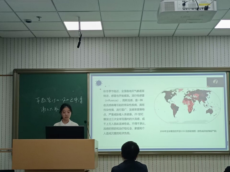 首先,吴珂瑜以《抗生素的奥妙》为题,介绍了抗生素的发现、应用历史等,他还根据自身社会实践经历,向同学们科普了抗生素在临床上存在的问题。