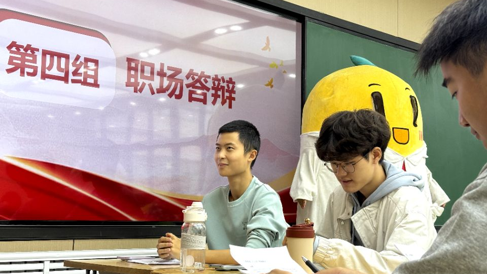 随后,同学们分为4个小组,分别以学术答辩、考试失利、团队冲突、职场面试等场景为主题进行情景剧表演。通过阅读和实践相结合的形式,同学们在模拟情景中进一步深化思考、提升认知,逐步形成了积极面对成长挑战的思维模式。