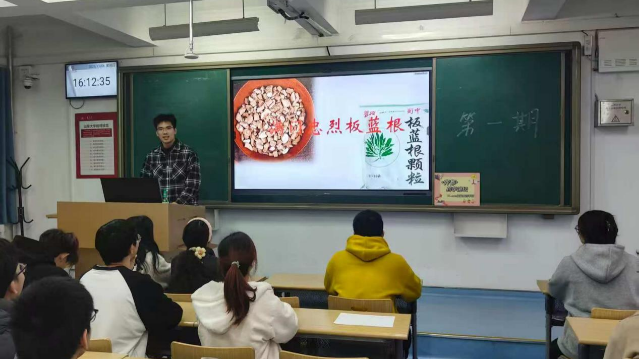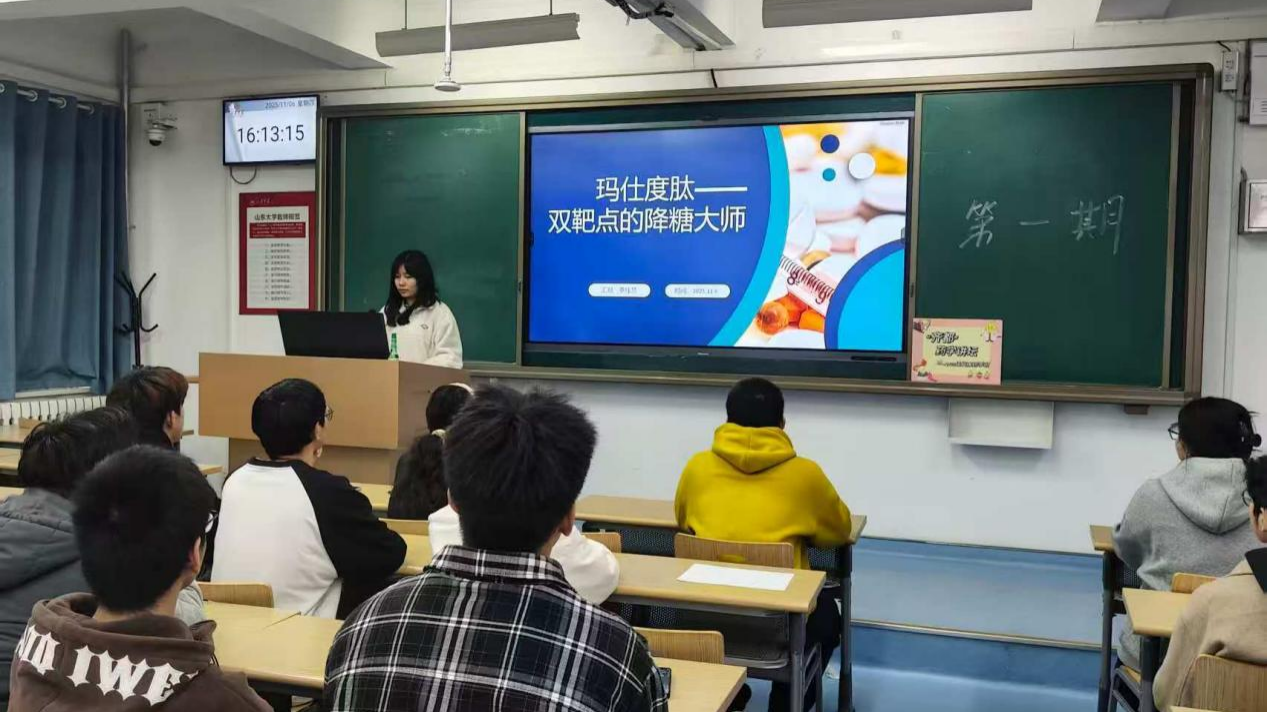 11月6日16时,304am永利集团2023级临床药学班在趵突泉校区图书馆西教室201举办了第一期药学讲坛。本次药学讲坛由王瑶主持,尼玛扎西、焦治翔、田梓溢、秦佳慧、张佳宁五位同学进行了与医药相关的演讲,班主任周丽波担任评委。