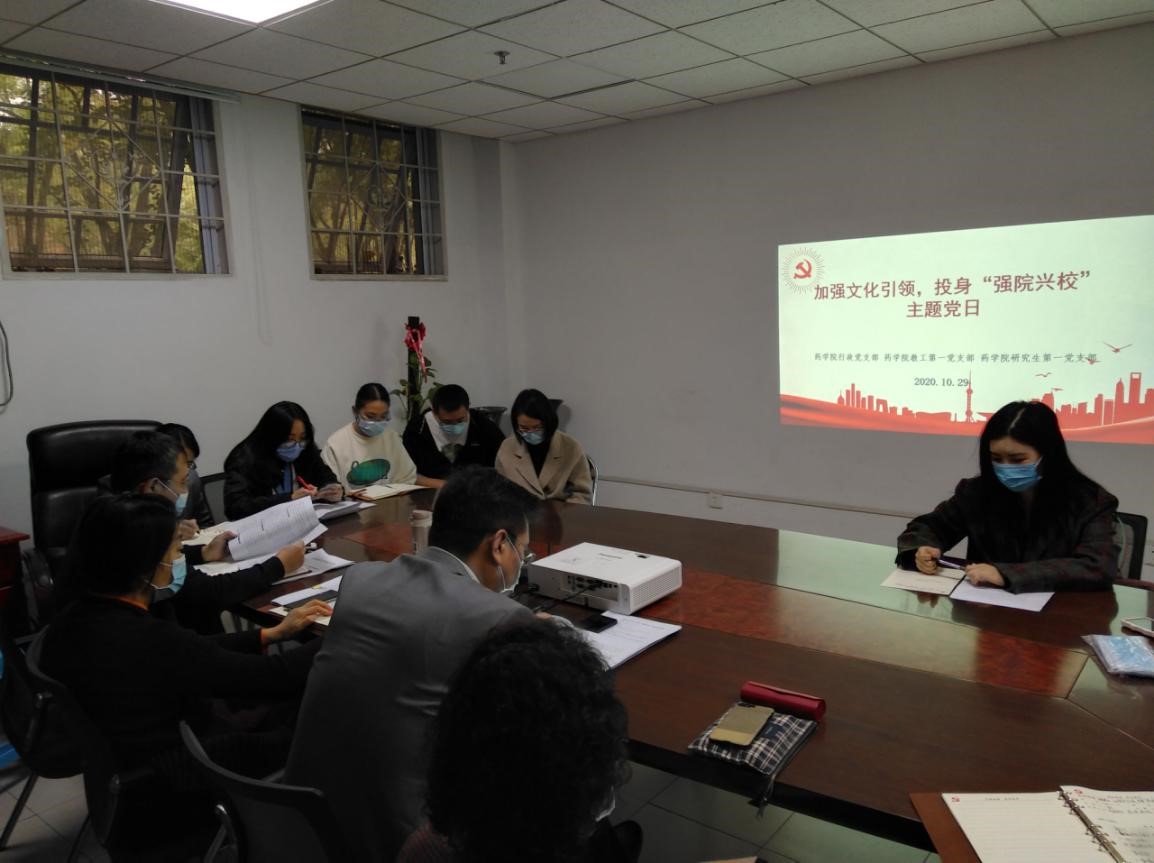 行政党支部、教工第一党支部、研究生第一党支部全体支委、教师和学生代表参加了会议。