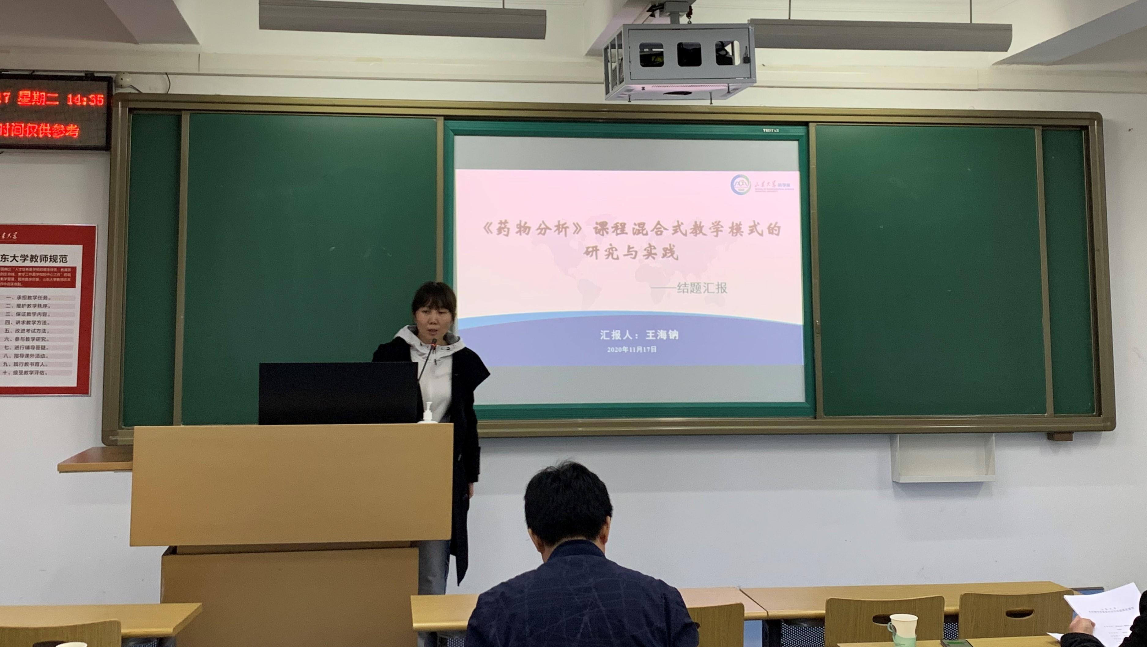 王海钠老师以“《药物分析》课程混合式教学模式的研究与实践”为研究方向,对《药物分析》的教学模式进行创新性地改革,从教学理论研究和教学实践研究出发,对混合教学模式的实际效果进行实证研究,选择较佳的交互组合方式,创新性地建立定量评价方法,真正地实现“多中心”的学习环境,进一步提升人才培养质量。展鹏老师通过构建涵盖研究式案例教学、翻转互动教学等新型的多元化课堂教学模式及全过程成绩考核方法,将思政教育元素融入课堂教学,实现专业知识、药学科研与思政教育的统一,对教学内容与方法进行了改革。韩秀珍老师在课题研究中,突破以讲授为主按课程组织教学的封闭式教学体系,建立完善以学生为中心,案例组织教学的开放式教学体系,从理论到实践进行混合式教学新模式的探索与实践。