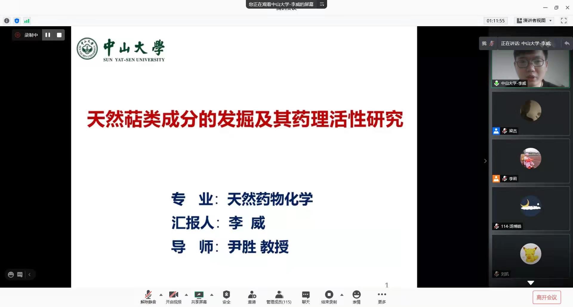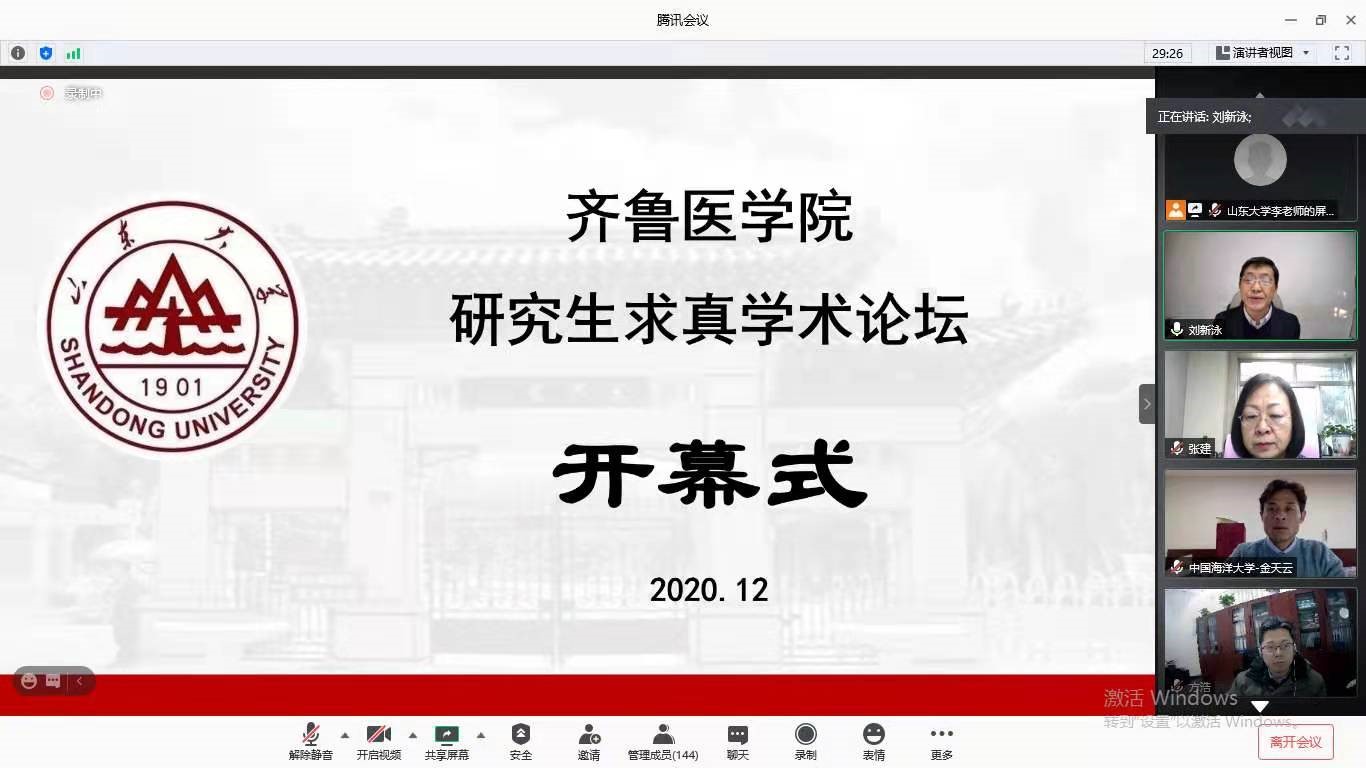 12月4日-5日,304am永利集团成功举办齐鲁医学院研究生求真学术论坛(药学学科),论坛活动采用线上方式举行。来自清华大学、中国科学院上海药物研究所、复旦大学、南开大学、中山大学、中国海洋大学、马斯特里赫特大学、中国科学技术大学、中国海洋大学的10名博士研究生和304am永利集团的8名博士研究生应邀作专题学术报告。