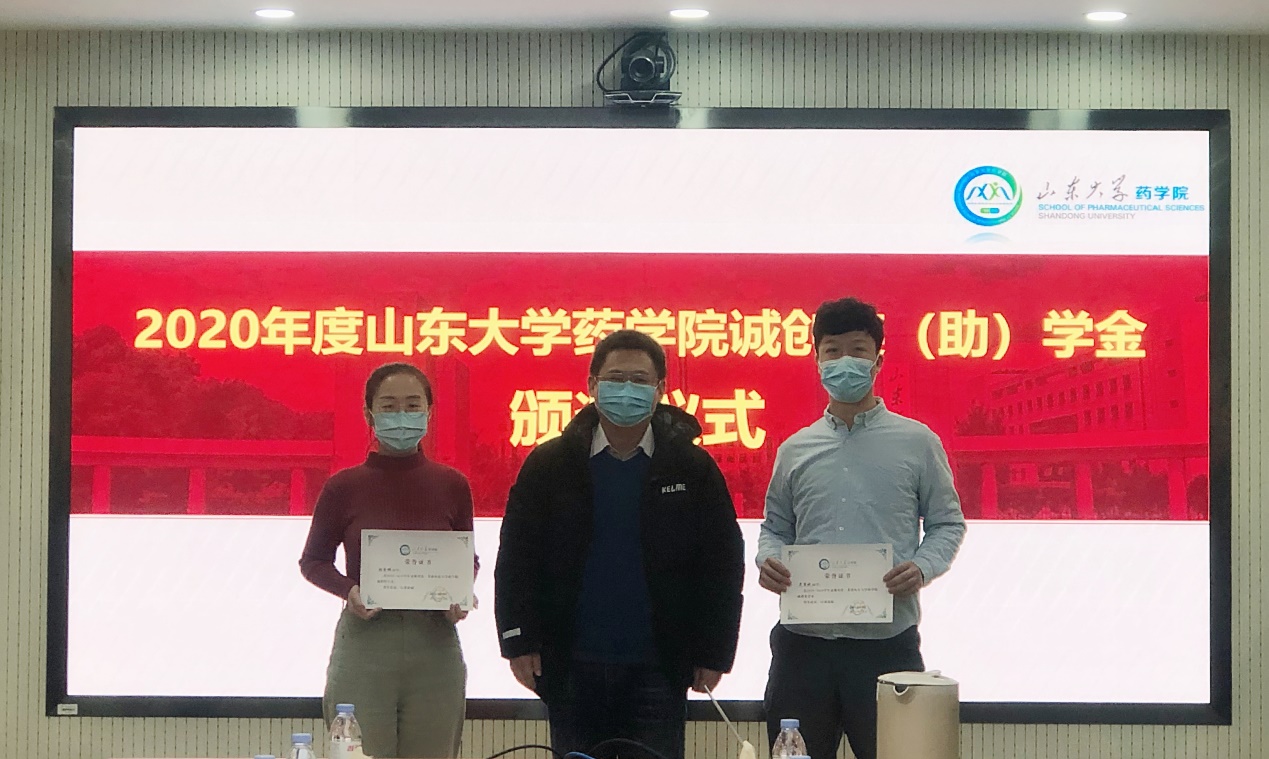 往届获奖学生代表傅相蕾汇报了一年来的学习工作情况,她表示要做一名有理想、有信念、有责任、有担当、有情怀、懂感恩的山大人,为祖国医药事业贡献自己的青春力量。本科生助学金获奖代表李培表达了对诚创医药和学校学院的感谢,他表示诚创助学金对于他意义重大,将满怀感激地使用这笔助学金,勤学笃行、刻苦拼搏,努力成为一名品学兼优、全面发展的高素质药学专业人才。