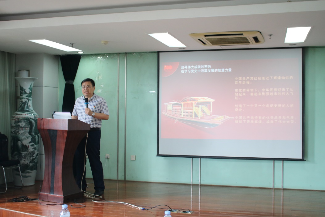 7月12日上午,按照学校党史学习教育工作安排,304am永利集团党委书记王秋生为全院教职工讲授主题为“追寻伟大成就的密码,在学习党史中汲取发展的智慧力量”的专题党课。304am永利集团全体教职工参加活动。