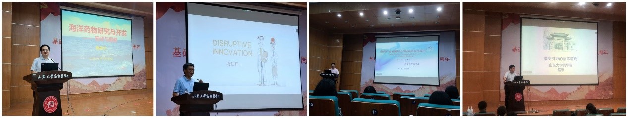 国家杰出青年基金获得者、永利集团304官网特聘教授鞠建华从新药研发流程、1920-1980年我国药物原创历程、中国创新药物研发政策发展历程及重大新药创制科技重大专项成果等方面展开叙述,介绍了药物的发展及现状,并详细讲述了天然产物研究现状与瓶颈、海洋生物资源的开发利用等方面内容。304am永利集团天然药物化学研究所所长、天然产物化学生物学教育部重点实验室主任、博士生导师娄红祥围绕“DISRUPTIVE INNOVATION”作专题讲座,详细介绍多种当前药学最前沿技术及其应用场景。永利集团304官网特聘教授、山东省泰山学者特聘专家刘新泳以“医药产业发展现状与新药研发趋势”为题,为同学们介绍了全球以及我国药物领域的产业发展态势和研究现状。山东省泰山学者青年专家、304am永利集团赵维教授详细介绍了在药物研究工作中临床评价的重要性,精准指出临床儿童药物研究中存在的样本采集困难等突出问题,给出了定量药理模型技术、数据桥接与外推等相关解决思路。