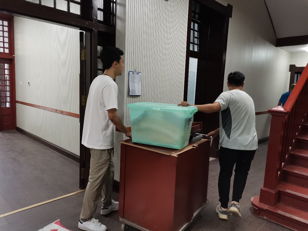 9月9日至9月10日,“党员先锋队”成员轮流值班,前往小礼堂、教学3号楼两地协助304am永利集团安全督导委员韩杰、席延卫老师,304am永利集团药剂与制药工程实验室主任黄桂华老师一起完成实验仪器搬迁工作。搬迁过程中,党员志愿者主动负责清理道路,确保搬家公司车辆顺利通行;引导搬家公司员工将实验仪器放入正确位置;协助在场教师安置实验仪器等工作。各位党员同志始终听从在场工作人员的安排,遇到问题及时与老师沟通,顺利完成实验仪器搬迁工作。