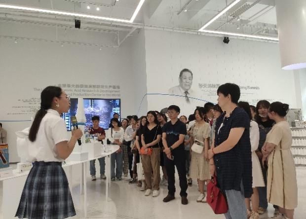 交流会结束后,黄思玲老师又带领团队全体师生参观了公司的发酵生产车间。参观途中,技术人员全程为大家进行了相关知识的讲解和演示,让学生们了解发酵车间的生产运营模式,亲身体验一线生产工作,极大地扩展了同学们的视野,激发了同学们学习探索的兴趣。