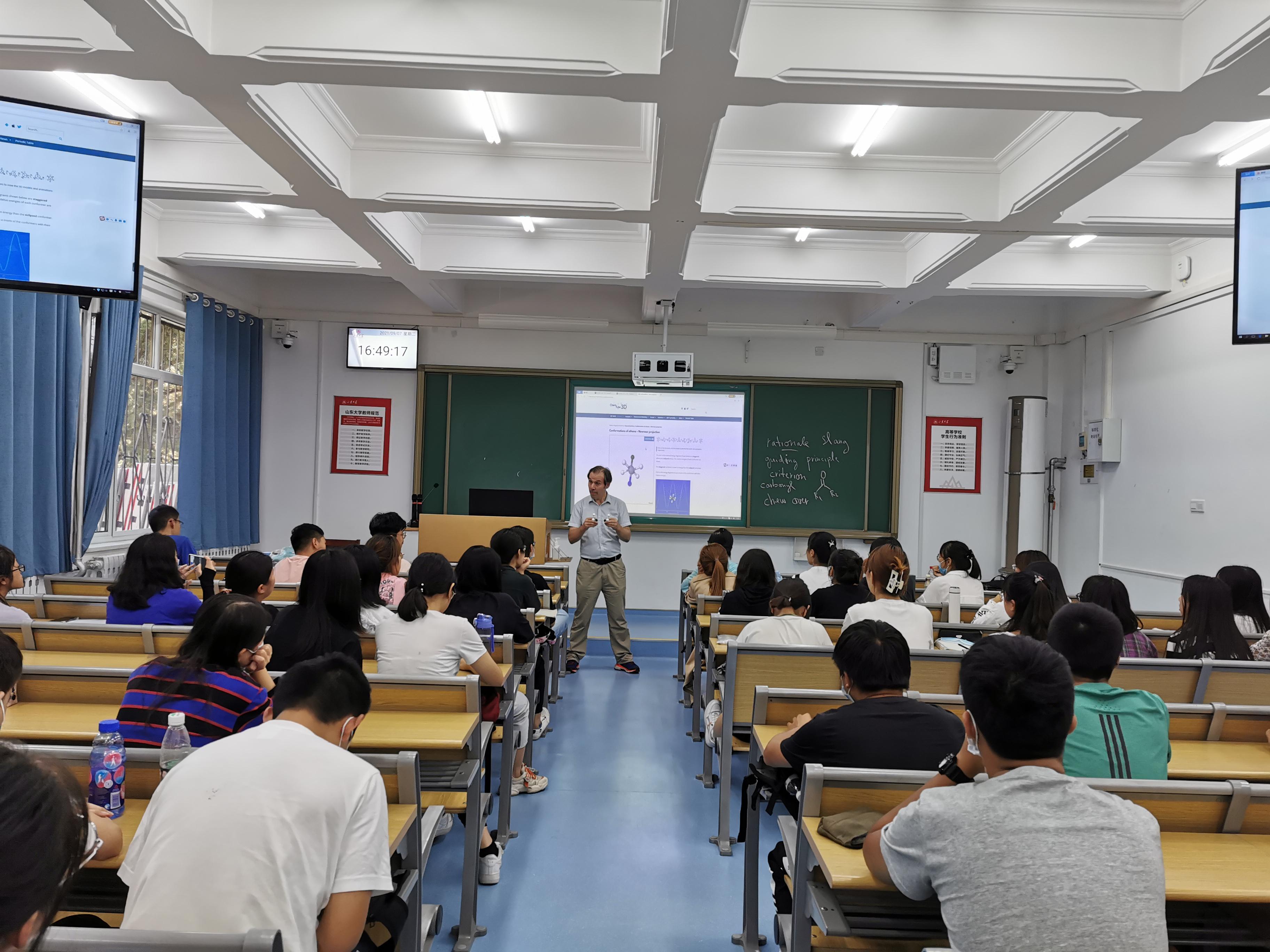为培养学生国际视野和跨文化交流的能力,进一步推进教育国际化进程,304am永利集团于本学期成功开设全英文课程Biological and Medicinal Organic Chemistry(生物和药物有机化学),课程由学院外籍教师Markus Neckenig博士授课,304am永利集团教学副院长王小宁教授陪同指导。让学生们不出校门便能感受到全英文授课氛围,原汁原味地学习到学科前沿知识。