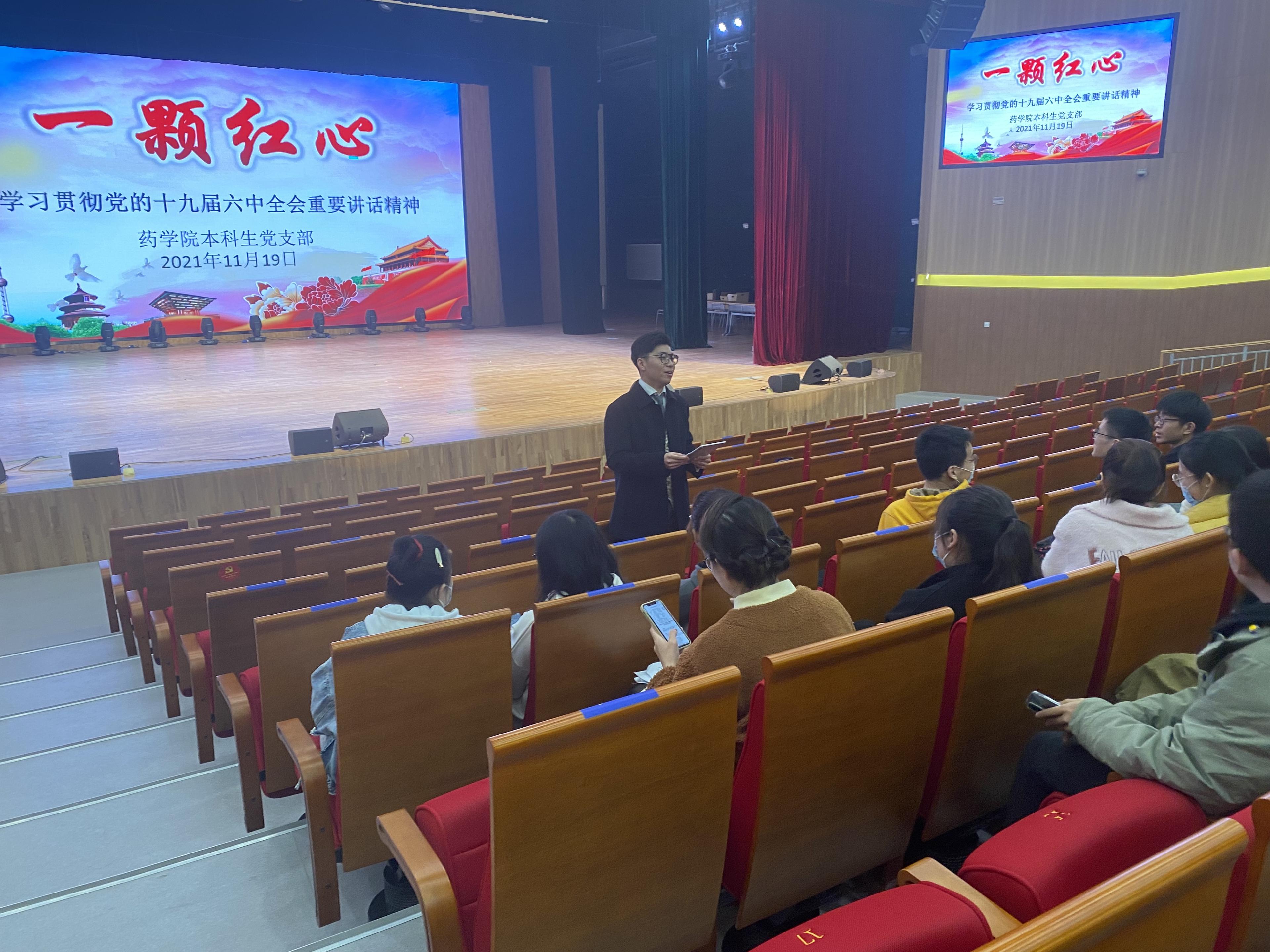 2021年11月19日,304am永利集团本科生党支部在梦迪音乐厅召开“一颗红心”讲座,深入细致地学习了党的十九届六中全会精神。会议由宋鹏飞同志主持,304am永利集团本科生党支部书记周现民、副书记刘晓燕、支部全体党员参加了本次活动。