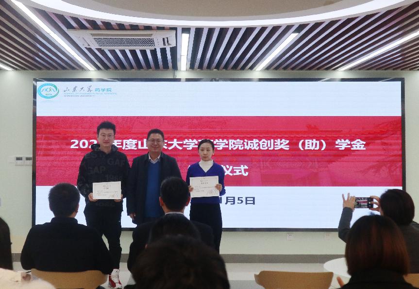 研究生获奖代表吴航汇报了入学山大以来的学习成长情况,他代表全体获奖学生表示要做脚踏实地、努力奋斗、心系家国、勇于担当的青年人,用勤奋、务实、高效、创新来回报母校、回报企业、回报社会。本科生获奖代表刘雪宁表达了对诚创医药和学校学院的感谢,她表示诚创奖(助)学金对于学生而言不仅仅是经济上的帮助,更是对他们学习成果的认可,精神上的鼓励,未来将化荣誉为动力,力争卓越,努力把自己塑造成全面的高素质人才。