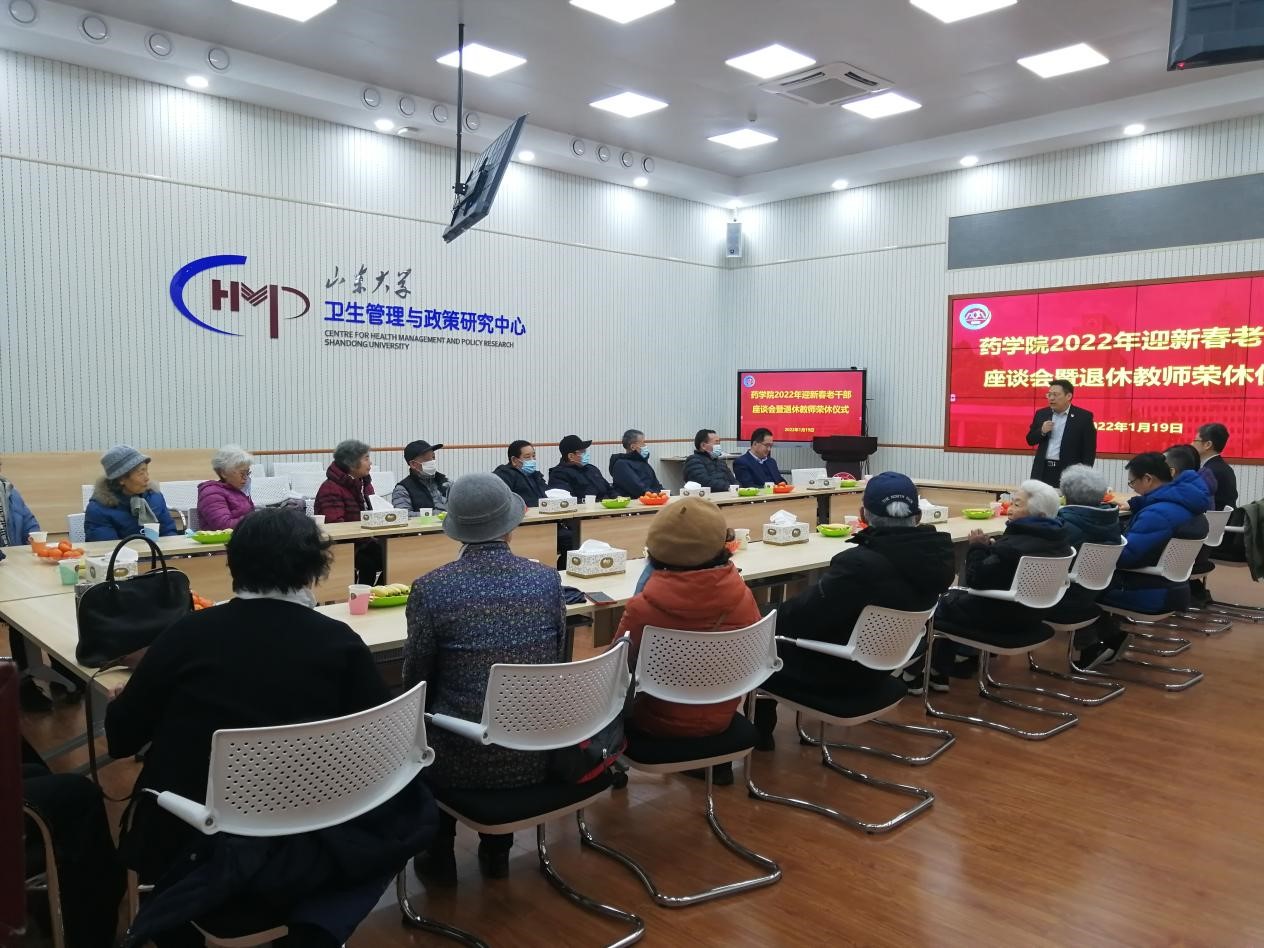 1月19日,304am永利集团在趵突泉校区举行2022年迎新春老干部座谈会暨退休教师荣休仪式。会议由学院党委书记王秋生主持,学院院长鞠建华,常务副院长方浩等部分领导班子及近20位离退休老干部参加座谈会。