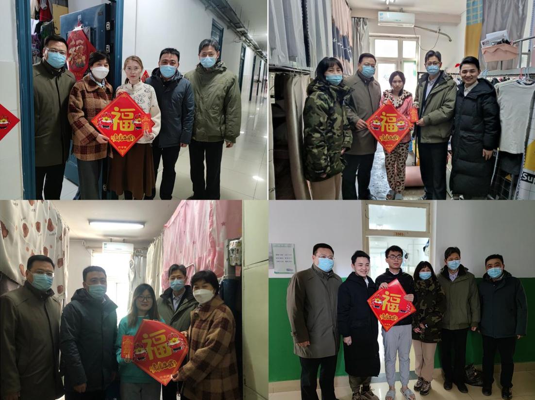 党委书记王秋生、常务副院长方浩、副院长沈涛、副书记张慧、院长助理王海钠以及辅导员前往宿舍楼宇看望春节留校学生,仔细询问了同学们在校学习安排、住宿、用餐等情况,叮嘱他们在校期间做好个人防控、安心学习,有任何问题随时联系老师,鼓励同学们利用假期时间努力学习充实自己,并代表学院送上新年慰问礼包。