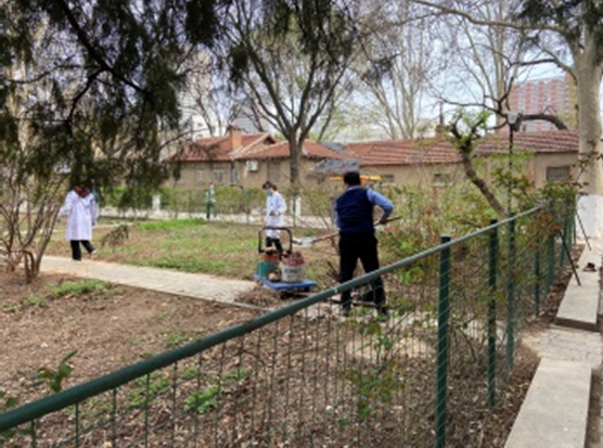 在清理过程中,王秋生指出“药圃同样是我们的实验室”,它承担着304am永利集团的教学任务,对于实验室的清洁管理同样要运用到药圃中。师生们在做好佩戴口罩、保持距离等防疫措施的基础上,运用铁锹、铁铲、拾物夹、垃圾袋等工具,认真清理散落在石阶缝隙、草丛深处的枯叶枯枝、纸屑、塑料袋、易拉罐等垃圾,很多碎石块等建筑废料也被大家一一拾起。师生们充分发扬不怕脏、不怕苦、不怕累的精神,一些平时容易被忽略的卫生死角,均被细心清理,经过两个小时的辛勤劳动,药圃焕然一新。