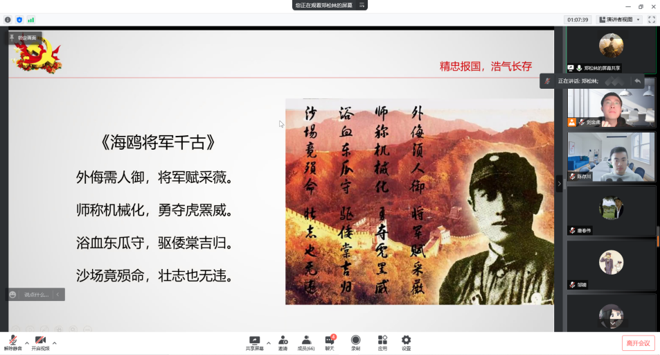 无数英雄抛忠骨,华夏盛开清明花。为缅怀革命先烈和战“疫”先锋,弘扬爱国主义精神,继承优良革命传统,同时凝聚党群力量,增进支部间、党员间合作交流。2022年4月4日上午9点,304am永利集团研究生第二党支部与公共卫生学院厚德四支部共同举办“缅怀革命先烈,致敬抗疫英雄”清明祭英烈线上主题党日活动。本次主题党日活动共分为四个环节,双方党支部全体党员、积极分子通过腾讯会议线上参加。