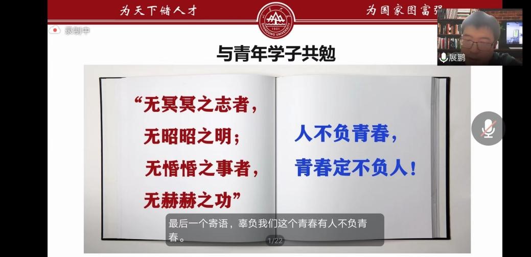为进一步密切师生联系,丰富校园封控管理下的学生生活,2022年4月12日下午304am永利集团“学而优术,堪擎时代”导学思政活动成功举办。活动由学院团委书记、学工办主任李冬老师主持。304am永利集团博士生导师、齐鲁青年学者、山东省杰出青年基金获得者展鹏教授为同学们线上传授科研与学术论文写作中的经验心得。