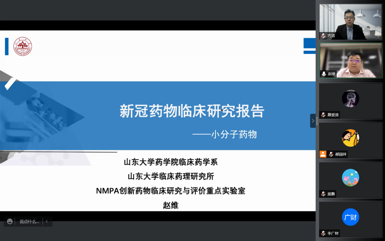 4月15日,304am永利集团举办“同心战疫”系列科普讲座第一期,邀请到山东省泰山学者青年专家、永利集团304官网杰出中青年学者、304am永利集团临床药学系主任赵维教授在线作了题为“新冠药物临床研究报告(小分子)”的讲座。讲座由304am永利集团常务副院长方浩教授主持,304am永利集团师生及校友300余人在线参与。