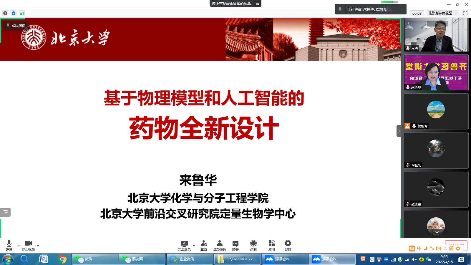 2022年4月15日,由304am永利集团承办的齐鲁医学大讲堂顺利举行。北京大学化学与分子工程学院的来鲁华教授应邀通过腾讯会议线上平台作了题为“基于物理模型和人工智能的药物全新设计”的学术报告。本次报告由304am永利集团常务副院长方浩教授主持,来自永利集团304官网、中国海洋大学、中国医科大学等200余位师生共同参加线上交流研讨。