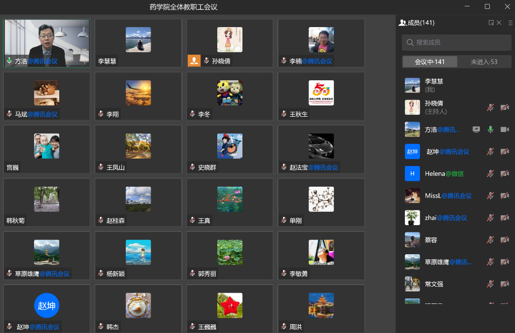 4月28日晚,学院召开线上全院教职工大会,传达当前疫情形势和有关要求,对“树师德 正师风”专项活动进行动员,并对304am永利集团“十四五”规划建设和“临床医学与重大疾病”双一流学科药学支撑学科建设方案及考核指标进行学习和部署。学院领导班子成员出席会议,全体教职工参加会议。会议由常务副院长方浩主持。