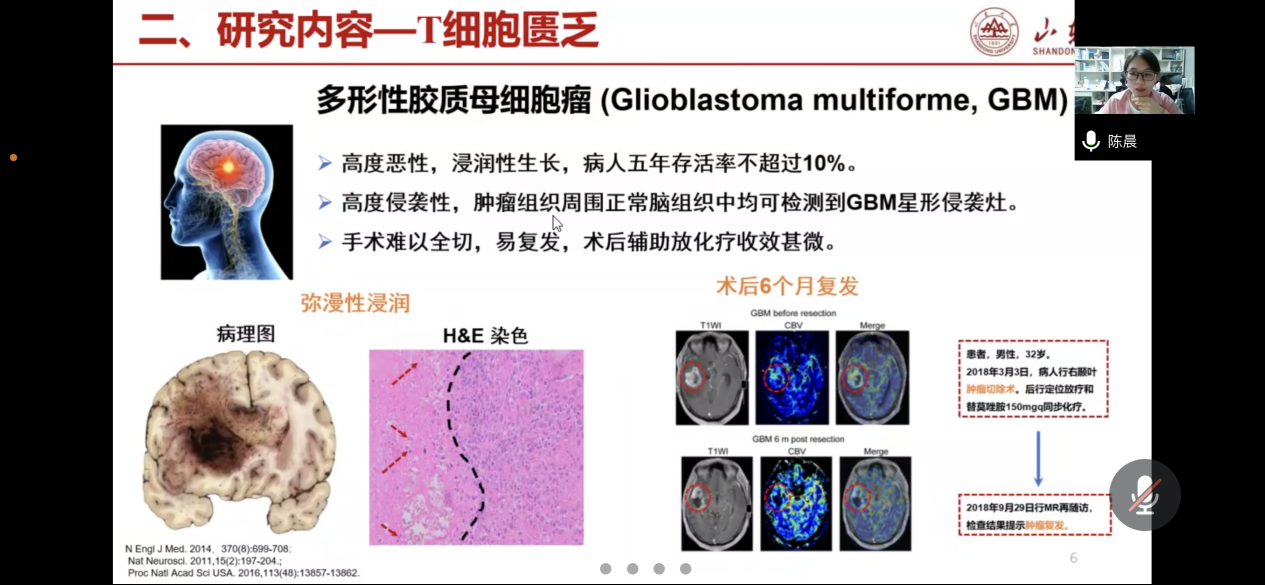 陈晨博士作了题为“多功能纳米递药系统的构建及在肿瘤治疗中的应用研究”的报告,主要介绍了博士期间的研究工作,包括构建CD133靶向的CAR巨噬细胞以改善术后抗肿瘤活性,以及针对免疫耐受构建乏氧响应纳米激发剂等。陈晨博士还分享了科研idea、实验步骤、相关软件使用及论文撰写等方面的科研经验。