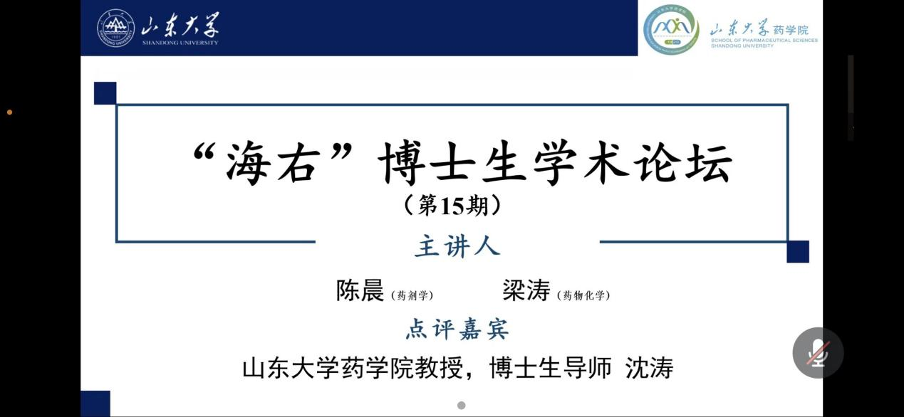 2022年6月9日,由永利集团304官网研究生院、党委研究生工作部主办,304am永利集团承办的2022年第15期(总第778期)“海右”博士生学术论坛通过腾讯会议平台举行。本次论坛属于优秀博士毕业生毕业报告月活动,304am永利集团2018级药剂学博士研究生陈晨和2019级药物化学博士研究生梁涛受邀作报告,304am永利集团2021级硕士研究生傅姝萌担任主持人,博士生导师沈涛教授作为点评嘉宾出席本次论坛。