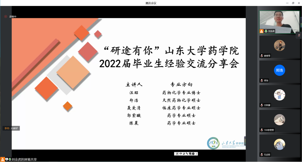 为充分发挥优秀毕业生党员的示范作用,引导在校学生积极进取、努力向上,6月14日晚,304am永利集团线上举行2022届优秀毕业生经验交流分享会。此次会议由研究生各党支部共同承办,共邀请五位优秀的研究生毕业生党员进行分享交流,304am永利集团学工办主任、团委书记李冬老师参会指导,研究生第二党支部书记刘金虎主持本次会议。