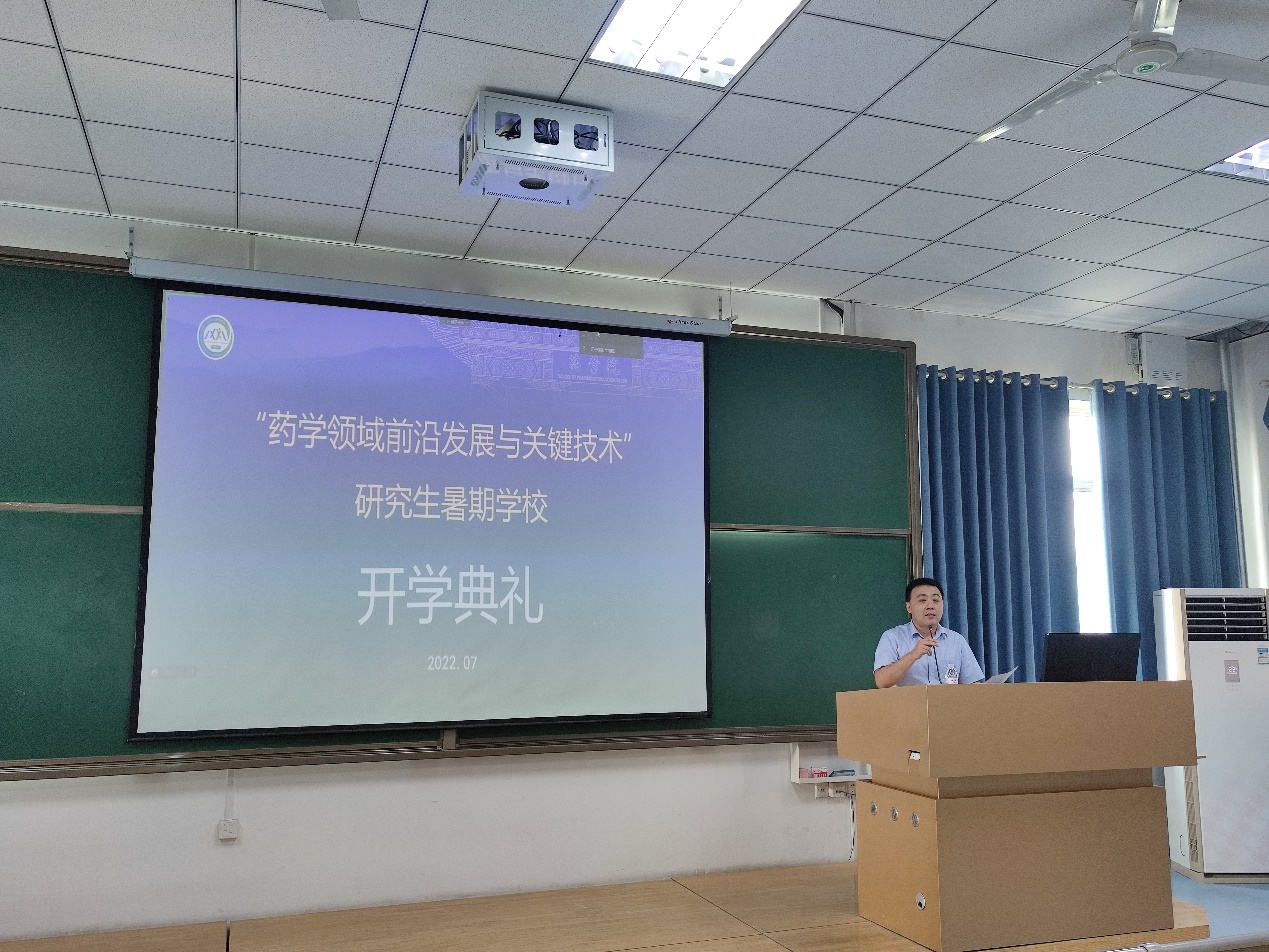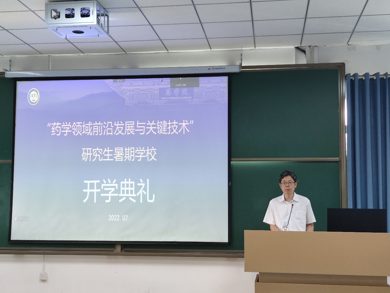 方浩对本次暑期学校包含的内容做了简要介绍。他指出,暑期学校是突破传统课堂授课模式,通过系列讲座形式,让即将进入研究生二年级的学生宏观了解药学发展前沿动态和关键技术。他强调,2021级研究生要通过学术大家、企业领袖、管理专家的悉心授课,在相对集中的时间内,开阔学术视野,拓宽科研思路,强化创新意识,提高科研素养。最后,方浩结合指导学生经验,要求学生“凡事提前五分钟”、加强团队内部协作能力,并预祝暑期学校圆满成功。