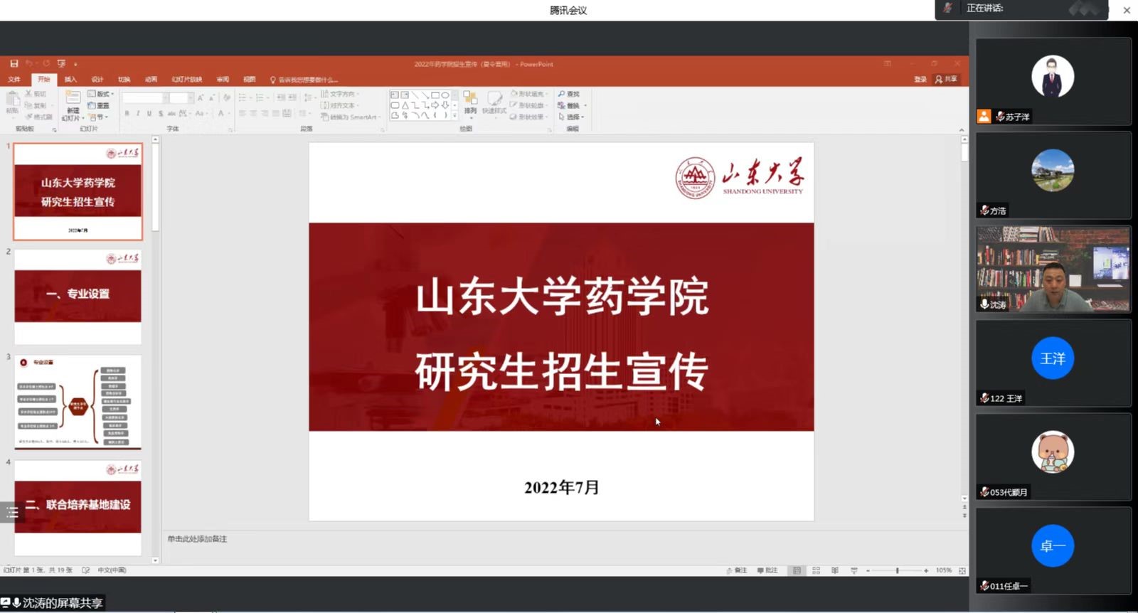 随后,304am永利集团各专业负责人分别为营员介绍药物化学、药理学、生药学、药物分析学、微生物与生化药学、药剂学、天然药物化学、制药工程学、临床药学和免疫药物学专业的师资队伍、研究方向、承担课题等内容,并向学员播放前期精心制作的本专业的研究生招生宣传视频,使营员对各专业的研究方向和科研环境有了进一步的了解。