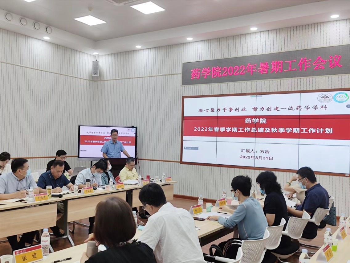 常务副院长方浩从人才培养、平台科研、人才引育、实验室安全、创新药物研究院建设进度等几个方面系统总结了2022年春季学期学院的工作成效,并结合学院改革发展主要任务对2022年秋季学期的工作进行了重点部署。指出2022年下半年,学院将以迎接和学习贯彻党的二十大为主线,持之以恒抓党建,坚持不懈促培养,锲而不舍强科研,孜孜不倦求人才,百折不挠固安全,做好疫情防控,推进教学科研,夯实服务保障,以精耕细作深化培育内生增长动能,锲而不舍地加快推进学院各项事业上台阶、上水平。