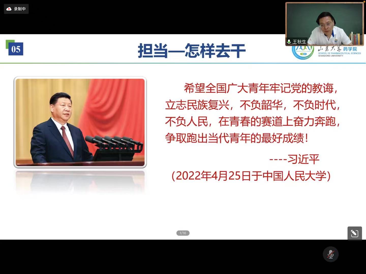 王秋生以《研究生?研究生!》为题,为同学们阐述了研究生的责任、能力、素养、担当,勉励同学们要坚定理想信念,厚植爱国情怀,加强品德修养,砥砺奋斗精神,增强实干精神,致力全面发展。希望同学们传承山大人的精神,担当药学人的使命,护佑人民健康,努力成长为堪当民族复兴大任的时代新人。