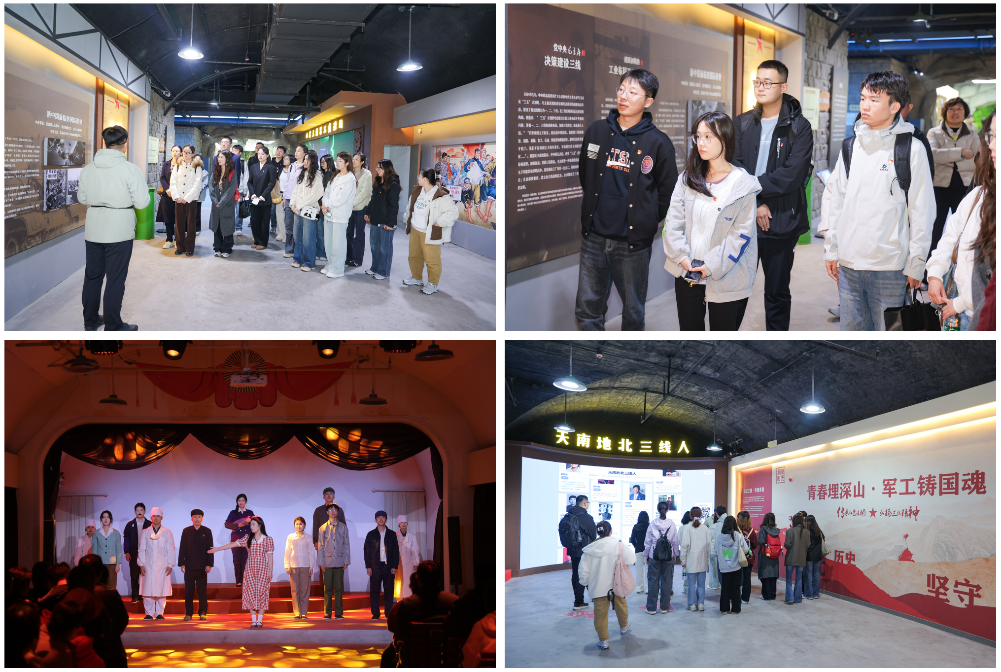 在国营山东第一机械厂旧址,全体党员一同参观“三线建设”主题展。研究生第八党支部书记王鑫月带领全体党员一同追忆20世纪60年代“三线人”的燃情岁月,通过展板、实物与互动展示,深入了解我国三线建设的战略意义。随后,大家一同观看了《洞见·沂源》沉浸式戏剧,一起去感受在那些被山岩包裹的日夜里,“艰苦创业、无私奉献、团结协作、勇于创新”的三线精神。大家一致认为千千万万这样的“三线人”,用他们的热血和汗水,铸就了共和国的坚强盾牌,成为那个时代最闪亮的坐标。