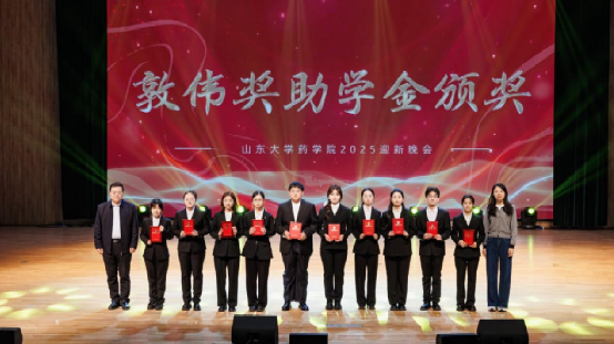 会上,郑媛与王秋生为敦伟奖助学金获奖学生颁奖。郑媛结合个人经历,介绍了药学领域发展趋势与就业机遇,解读了药学与人工智能交叉领域的潜力,对同学们的未来发展和就业提出了前瞻性的建议。
